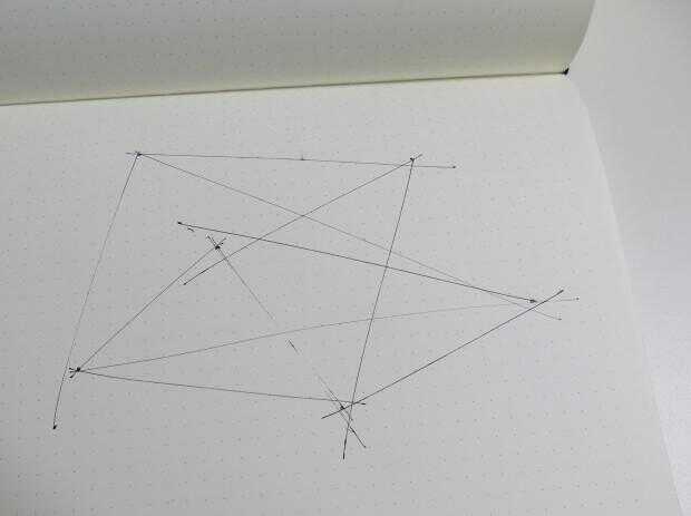 Ahora Conecte los puntos con líneas rectas. Se centran en el punto de su viaje a. Practicar el movimiento de un par de veces por encima de la página hasta que crees que tienes el camino hacia abajo. Luego ponga el lápiz y crear la línea. Trate de no dibujar más allá de los puntos, haz tu mejor esfuerzo para detener e iniciar cada línea en el punto. Rápidamente le ayudará a su forma de líneas que saltones. Yo no he practicado durante unos días y se pueden ver cuantas veces he perdido.