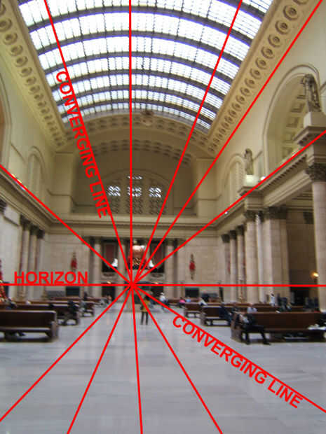 Ahora, si usted fuera a mirar fijo hacia adelante en el horizonte, el punto en el horizonte directamente delante de usted se consideraría el punto de fuga. Se llama el punto de fuga ya que todos los objetos parecen desaparecer hacia él como volver a la distancia.