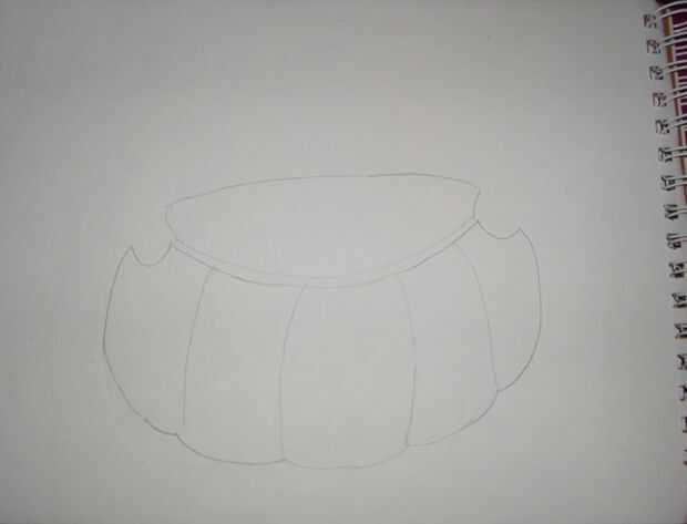 Empezar dibujando los bordes de la calabaza. Añadir la parte de atrás de la calabaza y las líneas en el frente.