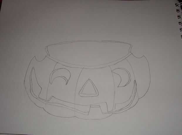 Dibujar la cara de Jack-o-lantern y añadir líneas para que se vea 3d.