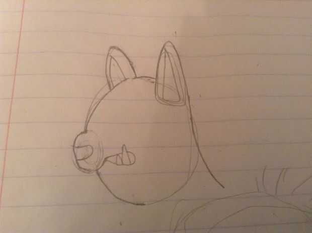 Comience con algunas líneas de construcción. Un círculo para la cabeza, triángulos redondeados para los oídos, un pequeño círculo para el hocico, (supongo que es un bozal!?) un óvalo para el cuerpo, (Nota: queremos hacer un poco más como un círculo porque Poochyena es algo gordito.) tres óvalos para las piernas y algunas líneas de la piel y la cola. Cuando eso se hace, comience con la cabeza por trazo sobre la línea de construcción del círculo debajo de la boca. Entonces, empezar la boca haciendo un medio círculo con una línea corta. Dibuje dos triángulos finos y largos para los dientes. Terminar la boca haciendo parte de un óvalo para el resto. Luego dibujar la nariz trazando una forma de tipo de jellybean. Rastrear más de la cabeza y hacer la primera oreja trazando poco a poco. No te olvides de dibujar el interior de la misma. A continuación, dibuje otra línea continua a la cabeza y hacer la otra oreja. Después de eso, dibuja el cuello, dibujar el ojo y por último, agregar datos de un triángulo en la cabeza y el cuello.