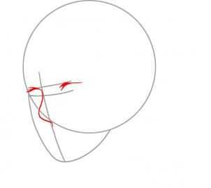 Ahora puede empezar a esbozar el principio de la guarnición para sus ojos e incorporar la nariz junto a ellos también.