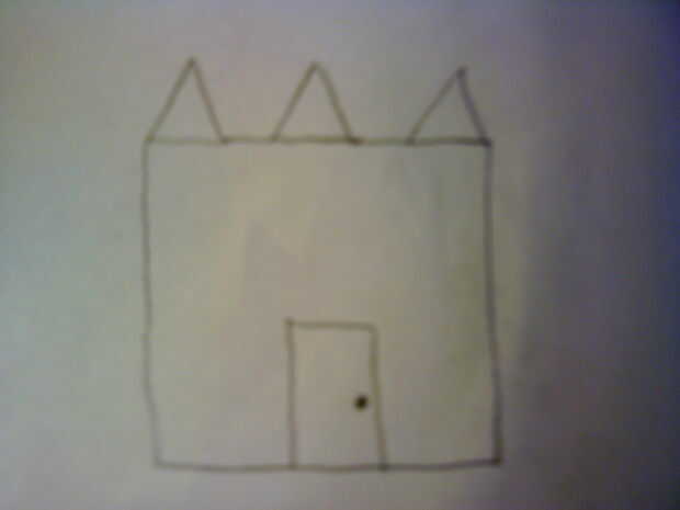 y luego dibujar una puerta cuadrada con un punto por una perilla en la parte media inferior.