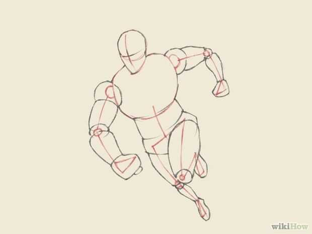 Utilizando su figura de palillo como su base, dibuje círculos y tubos para representar a los músculos.