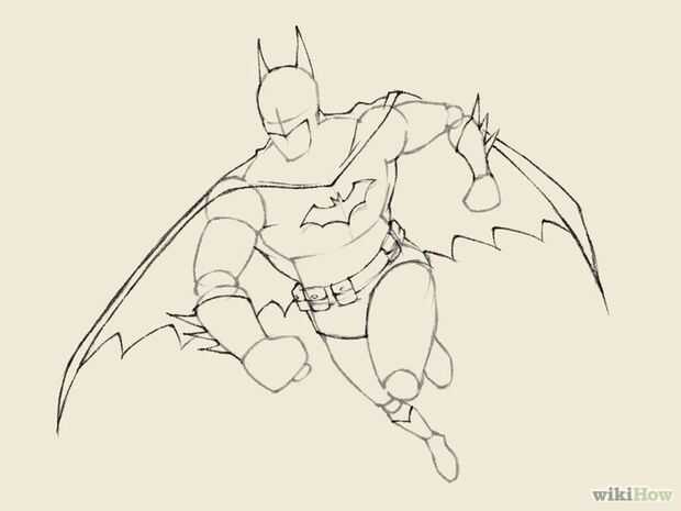 Añadir los detalles del traje de batman. No olvide añadir en dos cuernos puntiagudos, la máscara, el diseño de murciélago en el pecho, el cinturón conectado bolsillos, las tres cuchillas en sus guantes, sus botas y su capa con diseño zigzag en la parte inferior