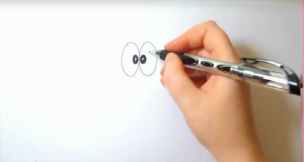 Extraer dos grandes formas ovaladas, luego añade dos óvalos más pequeños dentro de ellos para crear a los alumnos. Rellene estas figuras más pequeñas con su pluma o lápiz, dejando un poquito de blanco en cada uno.
