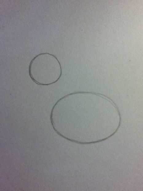 Dibuja un círculo grande y un óvalo más grande más abajo, así. ASEGÚRESE DE QUE PARA DIBUJAR LIGERAMENTE.
