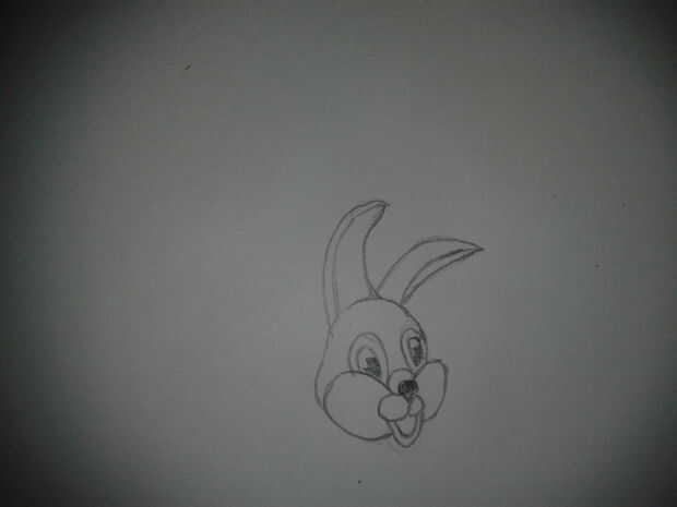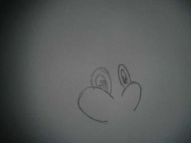 4 º: la cabeza y las orejas. Después de dibujar la pieza de la nariz que debe ahora terminar la cabeza dibujando un círculo que conecta el ojo derecho a la mejilla izquierda. Cuando se realiza este paso añadir tus propios oídos lindos a la parte superior de la cabeza de los conejos.