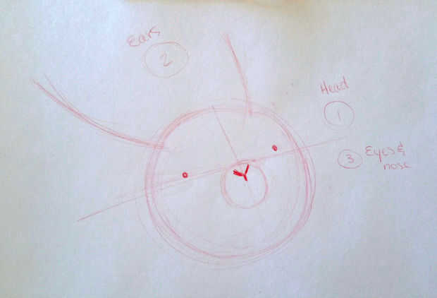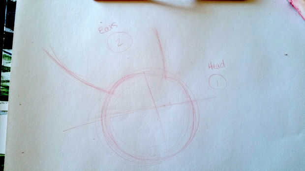 Para asegurarse de que todo se va a poner en el lugar correcto, cruzar dos líneas en el círculo central (creando una cruz - wow que genio!) esto ayuda a equilibrar los detalles de la cara una vez que a ellos. No es exactamente en el centro, porque mi cabeza de conejitos esté un poco como una vista 3/4.