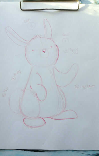 OK, ahora no flipar que el conejo tiene extremidades! Son formas básicas todavía. Mira de cerca; las piernas, pies y brazos son óvalos (o elipses,) para las formas básicas. ¿El doblado del brazo parece un poco un boomerang y los oídos honestamente parecen bananas... nadie que ver o es sólo a mí?