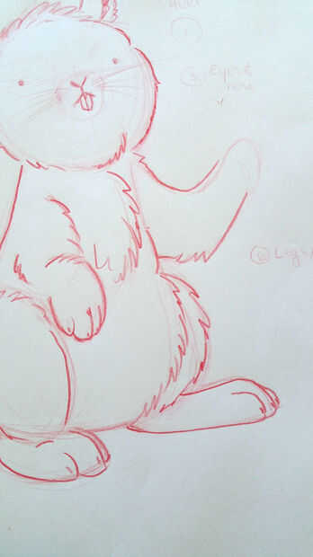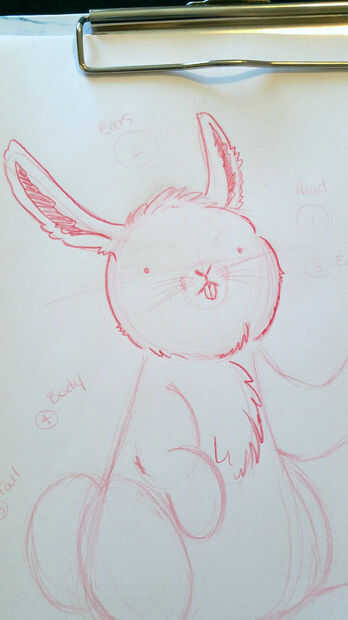 Los conejos tienen ese soplo de pecho, que en este equilibrio ayuda a dibujo el concepto de lindo fluffy bunny y dibujó en unas pocas líneas en los pies y las manos (patas?) para separar los dígitos de dedo para añadir un poco de realismo.