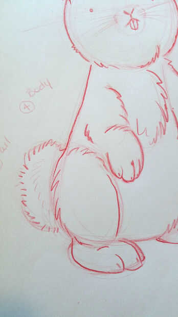 Dibujo de piel requiere muchas líneas onduladas como s curvada continua "W". Ayuda a romper el continuo garabatos 'w' con unas líneas rectas/curvas. También puede hacer lo que hice para los movimientos de cola, totalmente independiente "sunburst" hacia fuera pareciendo pelusa! Para referencia, dibujando las curvas hacia el suelo hace hincapié en la idea de la gravedad o peso. Pieles de animales (y pelo humano) tienden naturalmente a flujo/crecer en una dirección en el cuerpo - lo puede ayudar a con la realidad.