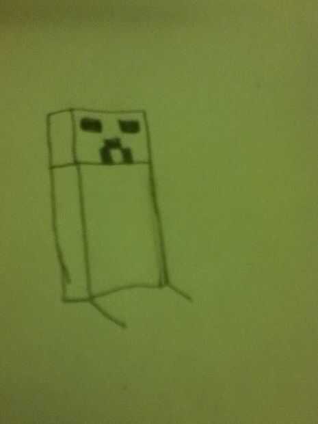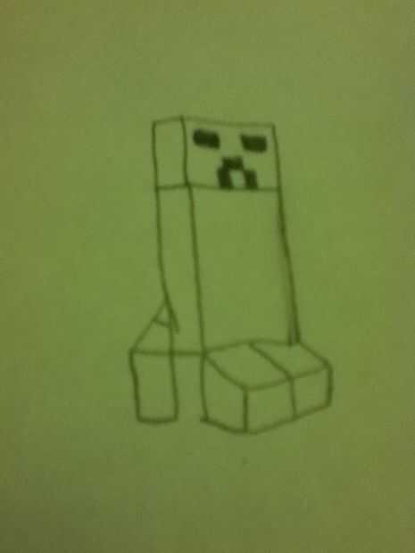 Paso 1: cabeza Dibujar un cubo para su cabeza (Duh).Paso 2: cuerpo Dibujar una forma más larga y más fina rectanglish para el cuerpo.Paso 3: piernas Añadir las tres patas (uno no puede ver) en el cuerpo.Paso 4: detalles Ahora añadir la cara de creepe