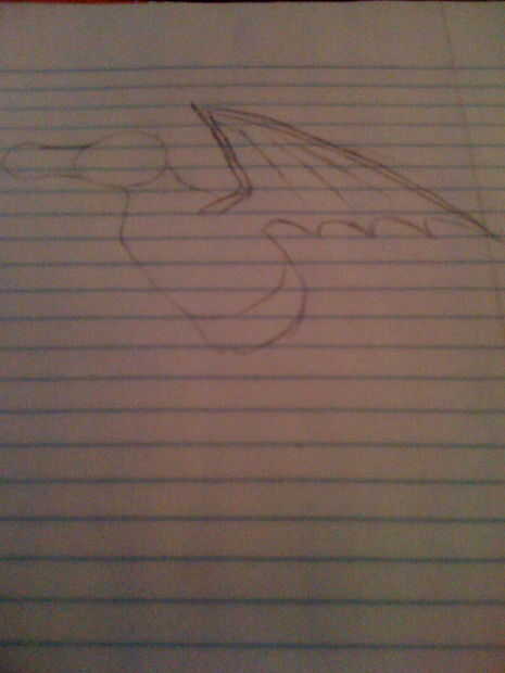 Como se muestra en la imagen, utilice formas para dibujar la cabeza y las alas. A continuación, rellene las alas y dibujar el cuerpo y comience en las extremidades.