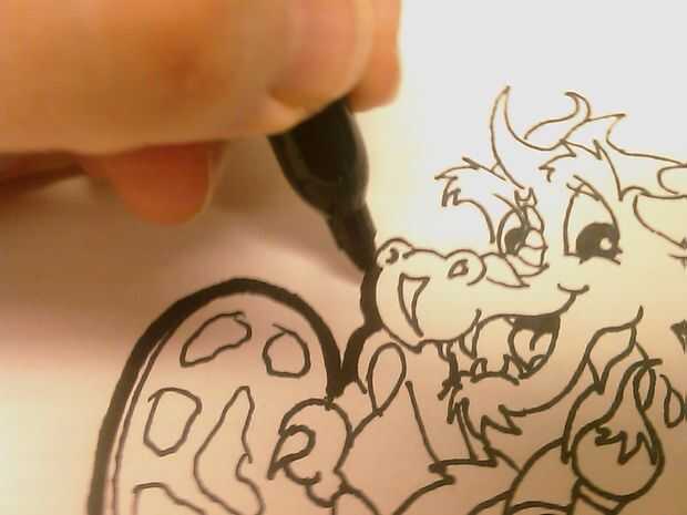 Sólo vamos a delinear los bordes exteriores del dragón dibujo con el rotulador de punta amplia.