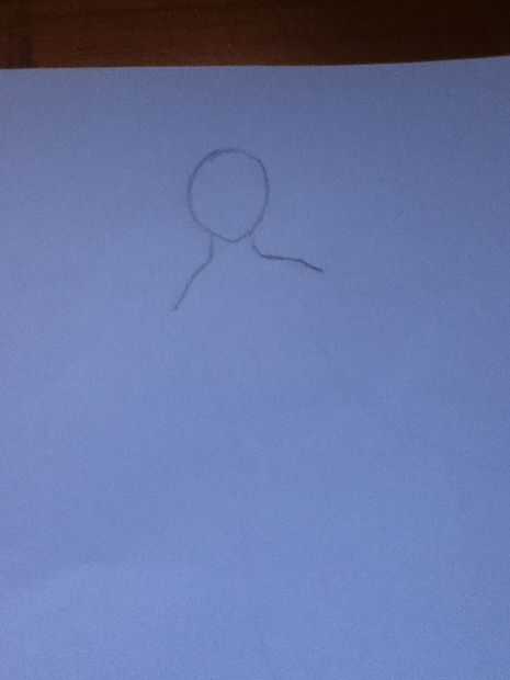 Paso 1: Forma de la cara Dibujar primero un empate círculo una línea hacia abajo el centro del círculo, entonces dos rectas por el medio de la línea.Paso 2: La forma del cuerpo Debajo del círculo dibujar una forma de cuerpo básico como este!Paso 3: E
