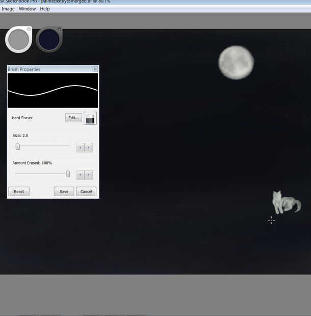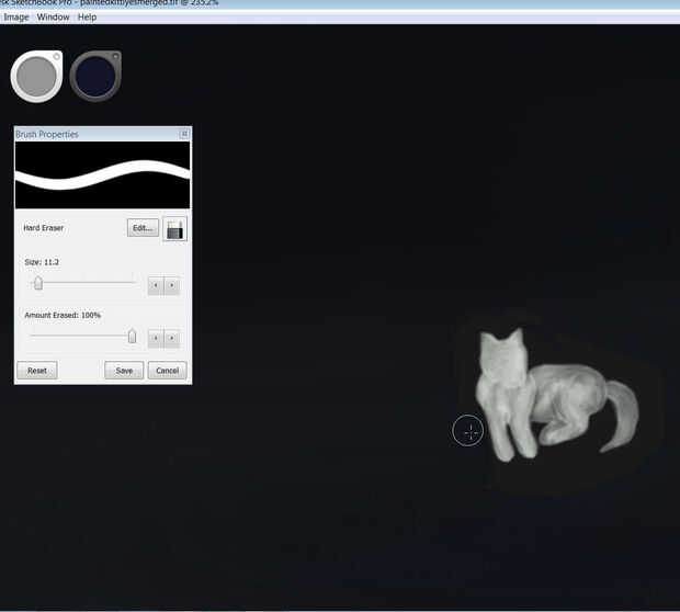 • Con la herramienta Borrador duro borré el fondo original por lo que era izquierda solo con el blanco del gato.