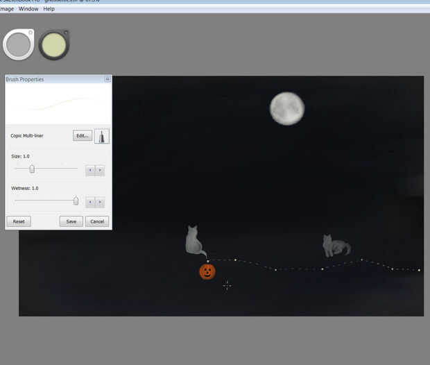 • Para el pequeño error de relámpago usé un sintético pincel redondo, tamaño 5.0 con un color amarillo pálido. Usé el lápiz para hacer las marcas de hash que indica la trayectoria de vuelo de insectos.