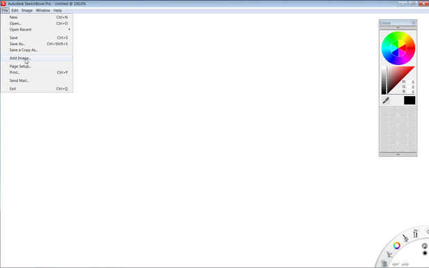 • Para comenzar he empezado con una página en blanco de Sketchbook Pro y del archivo de menú seleccionado Agregar imagen...