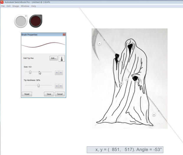 • Usé el borde recto (regla) y había alineado con el polo de la imagen de abajo. Con un rotulador y un color marrón que dibujé el polo de la guadaña.