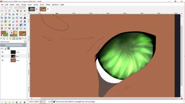 Aquí está la diversión parte! Hacer que una capa bajo el lineart. Me gustaria hacer el ojo en una capa separada del resto de los colores. De esta forma que fácilmente puedo hacer cambios a él más tarde.
