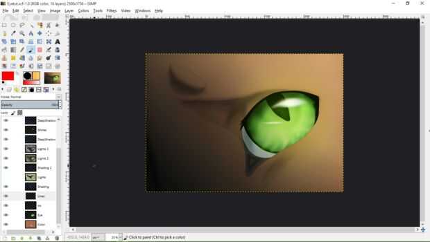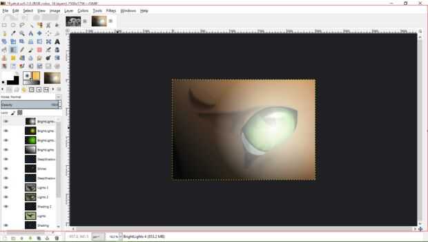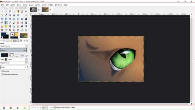 Añadir un degradado o dos con la herramienta de mezcla para agregar profundidad extra y un débil resplandor a los ojos.