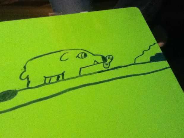 Aunque no sea parecido a un oso polar, podría hacerle parece de todos modos usted quiere esto es sólo un esbozo. Se ha añadido el toque de los peces en su boca y hielo agujero para mostrar que es un oso polar, que alguien podría decir ahora.