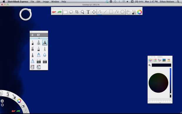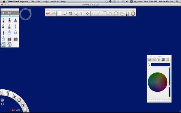 Así que selecciona un color azul oscuro de la paleta de colores a la derecha y utiliza el cubo de pintura para pintar el telón de fondo azul. Entonces opté por el marcador y cambiar el tamaño del pincel haciendo clic en el círculo de 'Propiedades de pincel' y arrastrando hacia la derecha para aumentar su tamaño. He cambiado mi color a negro y luego empecé a colorear los bordes, lo que es más oscuro en el exterior y más claro hacia la parte inferior y media.