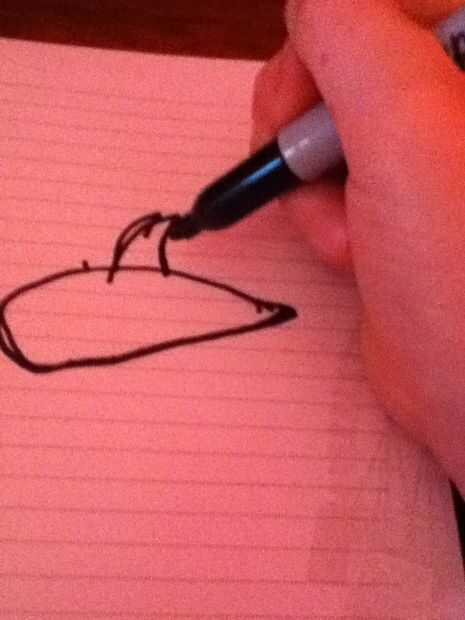 Se necesita: papel, lápiz, rotuladores (rojo, naranja, amarillo, verde y azul son los mejores colores para tener, pero usted debe haber negro) y su imaginación! :)Paso 1: Dos pequeños círculos Dibujar dos círculos pequeños apenas se tocan. Se trata d