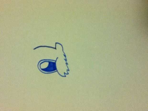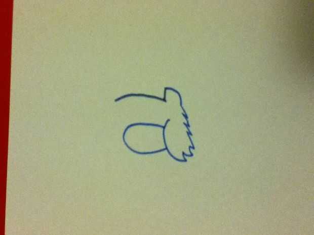 Para empezar dibujamos la cabeza y la nariz, dibujar una línea curva con una muy pequeña línea estrecha se unió en la parte inferior.