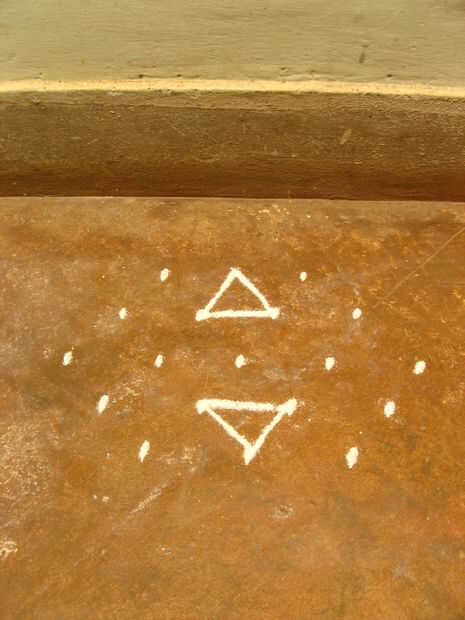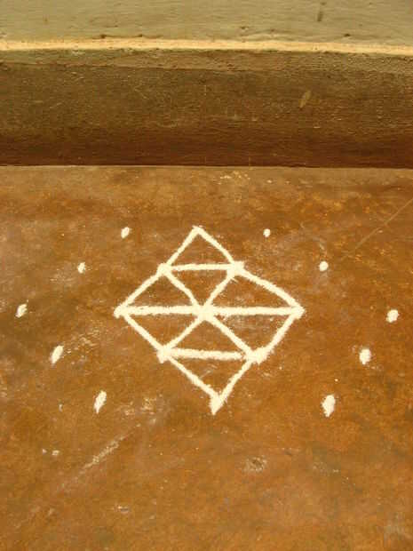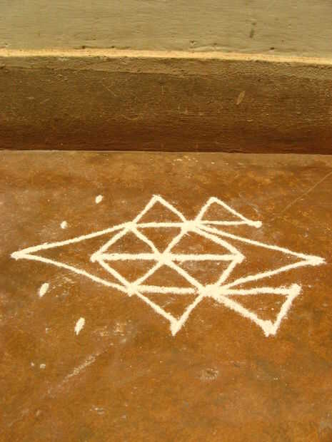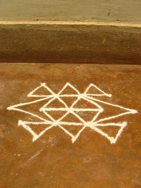 los siguientes pasos...1) siempre limpia el área de la tierra donde el Rangoli es otro el color del Rangoli no salen correctamente.2) no te preocupes un nuevo diseño, si eres principiante puede utilizar un diseño de un libro. Designss geométricas tal
