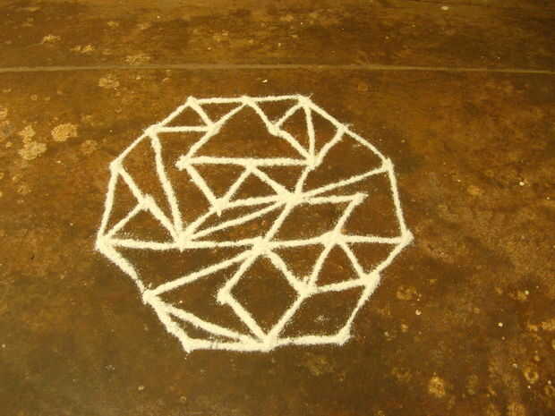 los siguientes pasos...1) siempre limpia el área de la tierra donde el Rangoli es otro el color del Rangoli no salen correctamente.2) no te preocupes un nuevo diseño, si eres principiante puede utilizar un diseño de un libro. Designss geométricas tal