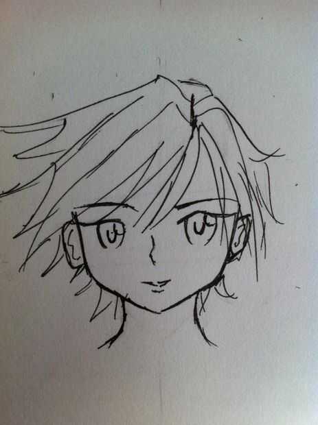 Dibujar la forma de media luna que está al revés en los ojos. Estos son los alumnos. A continuación dibujar burbuja un poco en los ojos, esto es el reflejo en los ojos. Deje este blanco. Asegúrese de que son grandes! Se trata de anime: P. entonces la cortina la pupila y la parte superior del ojo. Ahora que terminaste con tu primer cara de manga/anime!