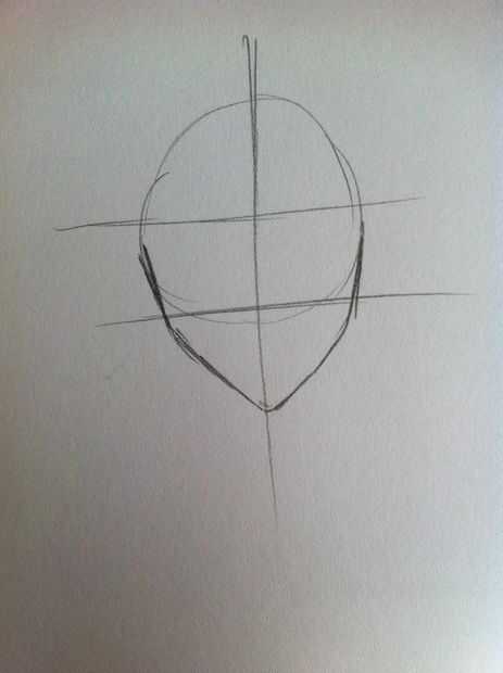 Aquí, dibujé la mandíbula para el personaje. A continuación, dibuje una línea horizontal en el centro del círculo. Esto divide Dónde está la cara y donde el frente/pelo será.
