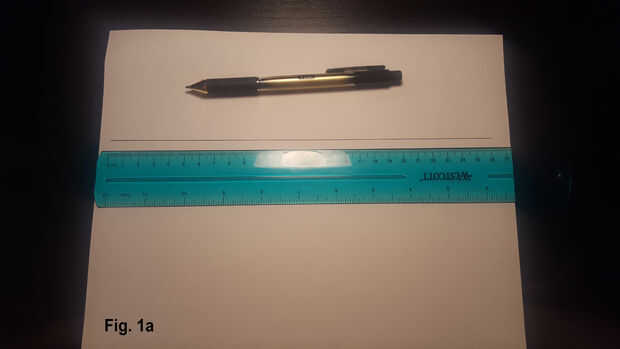 1.1 con el lápiz y regla, trace una línea horizontal, que abarca la mayor parte de su papel. Esta línea se llama su "Línea de Horizone" (HL). (Fig. 1a)