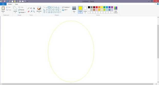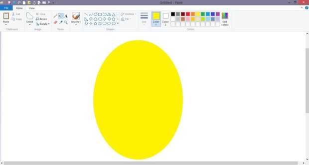 Seleccione el color amarillo en la barra de color que es en la parte superior de la página. Continuación, seleccione la herramienta "círculo" y hacer un óvalo en el centro de la página. A continuación, rellene utilizando el poder del"dolor" herramienta.