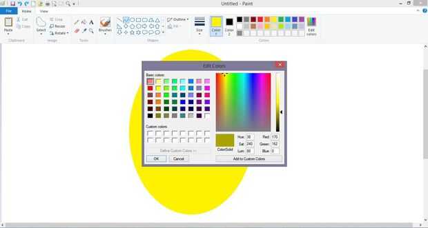 Haga clic en el icono "Editar colores". Pulse en el amarillo y hacer un poco más oscuro. Pulse Aceptar. Luego seleccione la herramienta de "curva" y hacer una línea curva para la boca de los súbditos.