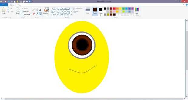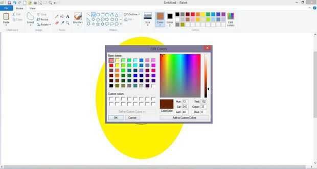 Ahora, vamos a dibujar la parte coloreada del ojo de los súbditos. En primer lugar, haga clic en el icono "Editar colores". Hacer un marrón y pulse Aceptar. A continuación, tome la herramienta de círculo y un círculo de brown y ponerlo alrededor de la pupila. Luego, tomar un café más oscuro (de la que usted acaba de hacer) y hacer una "isla" en la parte coloreada y la pupila. Luego tomar algunos cafés más ligeros y poner "garabatos" en el ojo como se muestra en la imagen.