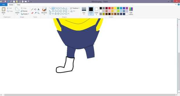 Ahora vamos a dibujar sus guardapolvos. En primer lugar, hacer un dril de algodón azul. Luego, con la herramienta de "curva", realizar una línea debajo de su ojo como se ve en la foto. A continuación, hacer dos otras líneas curvas bajando de los bordes de la primera. Haga dos líneas curvas más que sale por el lado de las líneas curvas que usted acaba de hacer. A continuación, rellene la parte inferior de los monos con el mismo azul con la "lata de pintura" herramienta. Ahora para hacer las piernas, hacer dos líneas curvas en la parte inferior de su ropa un poco maneras unos de otros y hacerlo en el otro lado también como se muestra en la imagen. Hacer las correas de la misma manera, excepto hacerlas más delgado y un poco más abajo que el goggle(s) correa. Ahora para hacer las botas. Tomar la herramienta de "curva" y seleccione negro. Hacer una forma como se muestra en la imagen de abajo haciendo varias curvas para hacer la forma deseada. Seleccionar el arranque con la herramienta de selección "forma libre" y copiarlo. Péguelo en el otro lado de su pierna del pantalón y relleno que ellos con negro If necesitan, usted puede acortar las piernas seleccionándolas y luego empujando hacia arriba.
