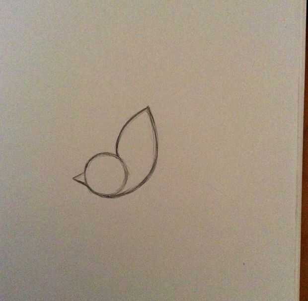 El siguiente paso es establecer un cuerpo conectado a la cabeza. Que sea redondeada hacia la cabeza y terminando en un punto donde comienza la cola como se muestra en la imagen. Añadir un pequeño triángulo para el pico.