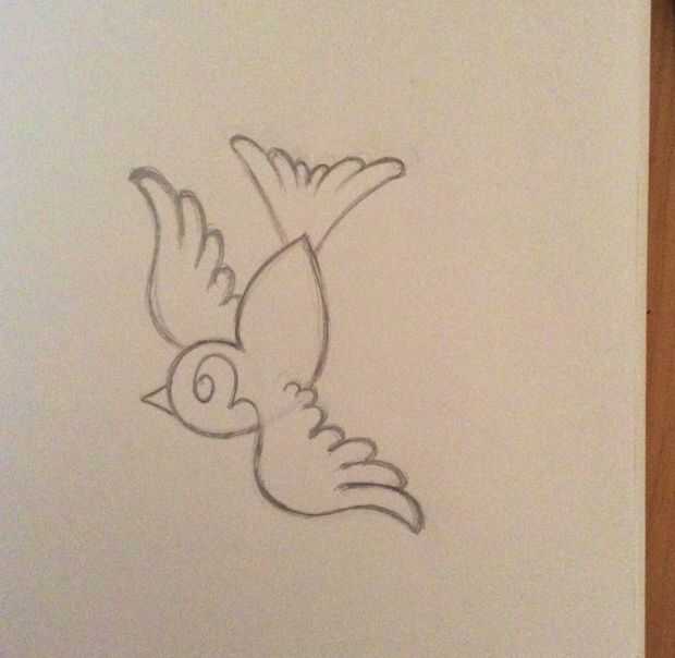 Ahora vamos a hacer las alas parecen realmente alas! Dibujar algunas plumas que son sólo capas de líneas curvas. Dibujarlas en ángulo hacia el exterior para hacerlos más realistas. Hacer lo mismo con la cola. Guíese por la imagen.