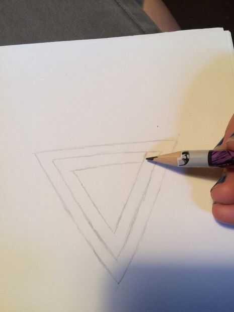garabatos 4 DUMMIES: triángulos 3dMateriales necesitados; Lápiz, borrador, marcador/lápiz negro* = Ligeramente dibuja lo que sigue. Esto se piensa para hacer futuro borrado más fácil y su proyecto final beatuiful más.Paso 1: Paso: 1 Paso 1: * dibujar