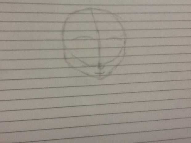 dibujar un óvalodibujar una forma transversal en toda la cara, una línea vertical y una línea horizontaldibujar círculos para los ojos en medio de la caraPaso 1: Ojos y narizhacer una pupila en la esquina de su ojo, añadir un círculo blanco para most