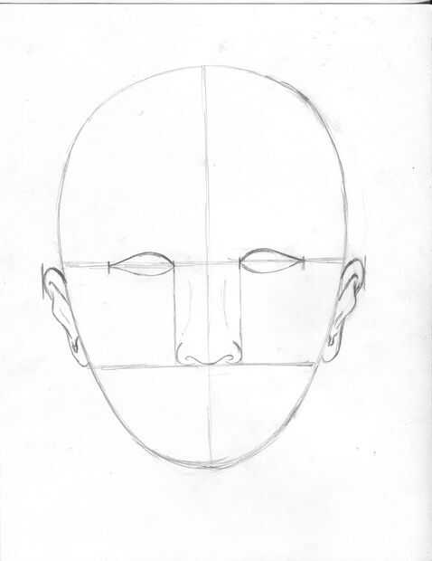 En primer lugar, trace una línea recta vertical desde el interior de cada ojo a la línea de centro de la parte inferior como se muestra. Luego, dibuja la nariz por lo que se encuentra ajustado en la parte inferior de la sección que acaba de crear.