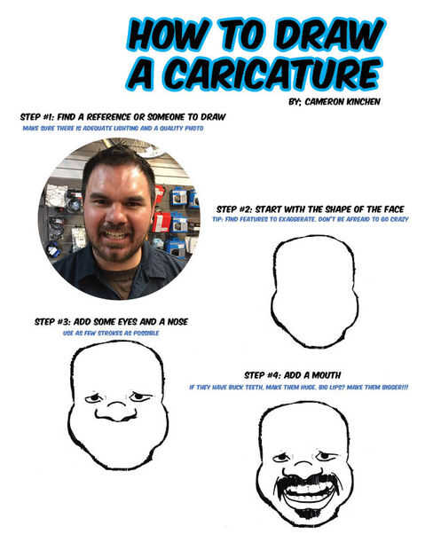 -Exagerar las características que destacan de inmediato (es decir, ojos, mandíbula, nariz, boca, orejas, etc.), no tenga miedo de hacer cosas locas.