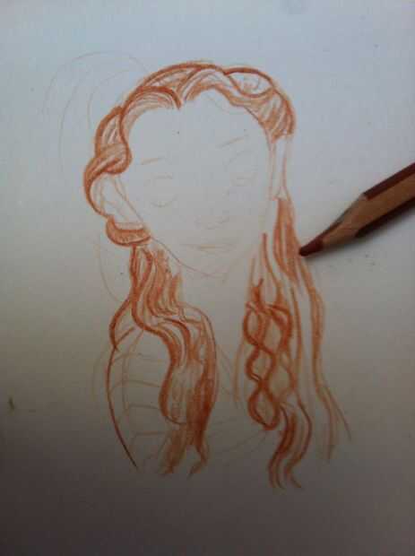 Dibuja la parte inferior del cabello, añadiendo en trenzas y rizadas piezas.