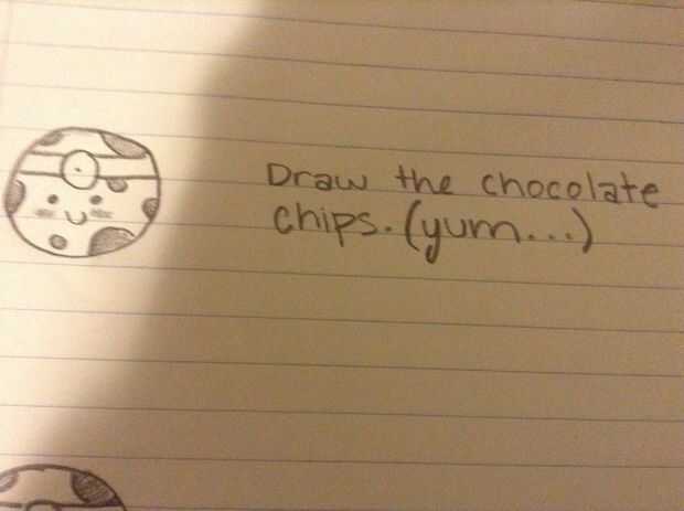a continuación, dibuja pequeños círculos alrededor para representar chips de chocolate.