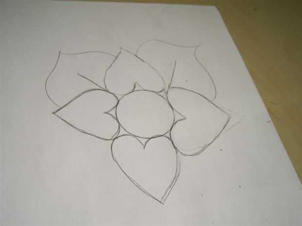 necesita un lápiz y un papelPaso 1: iniciar Dibujar un círculoPaso 2: media Dibujar 4 espadas en la parte superior, izquierda, derecha e inferior del círculoPaso 3: Añadir contenido de espadas más corazones y dibujan un tallo en la parte inferiorLO H