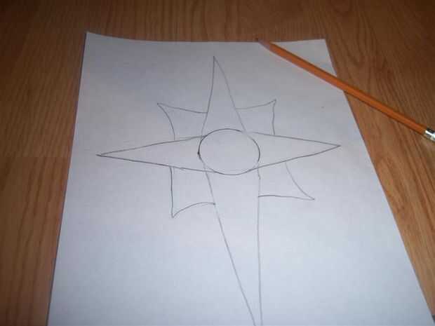 necesita un lápiz y un papelPaso 1: iniciar Dibujar un círculoPaso 2: media Dibujar 4 espadas en la parte superior, izquierda, derecha e inferior del círculoPaso 3: Añadir contenido de espadas más corazones y dibujan un tallo en la parte inferiorLO H