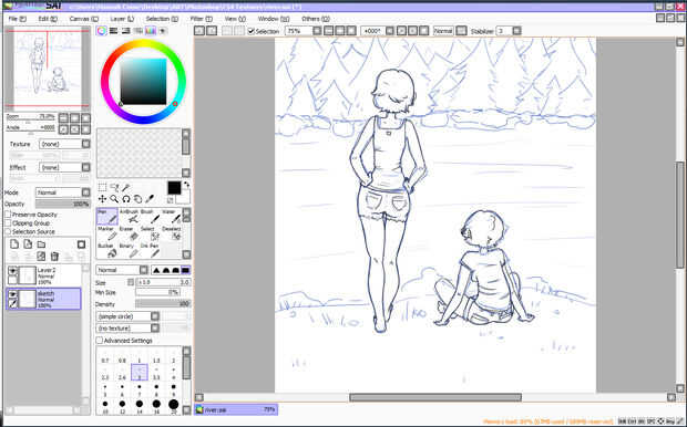 Así paso dos, abrir una nueva capa por encima de la capa de dibujo y cambiarle el nombre "tinta". Ahora la línea el dibujo con un color oscuro. Yo siempre uso negro.